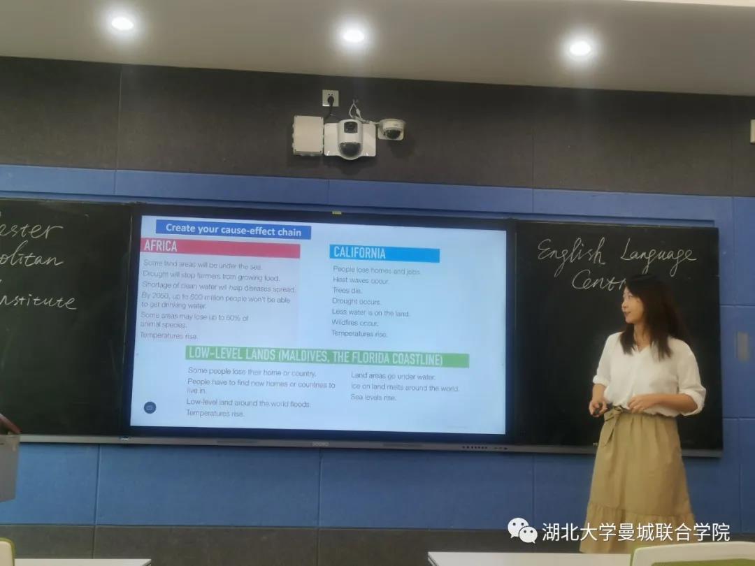 熊蒙老师在以气候变化为主题的口语课上,循序渐进地讲解了北极气候变化带来的一系列影响,并点出了原因与结果的逻辑以及英文连接词,并结合时事,让同学们学以致用。