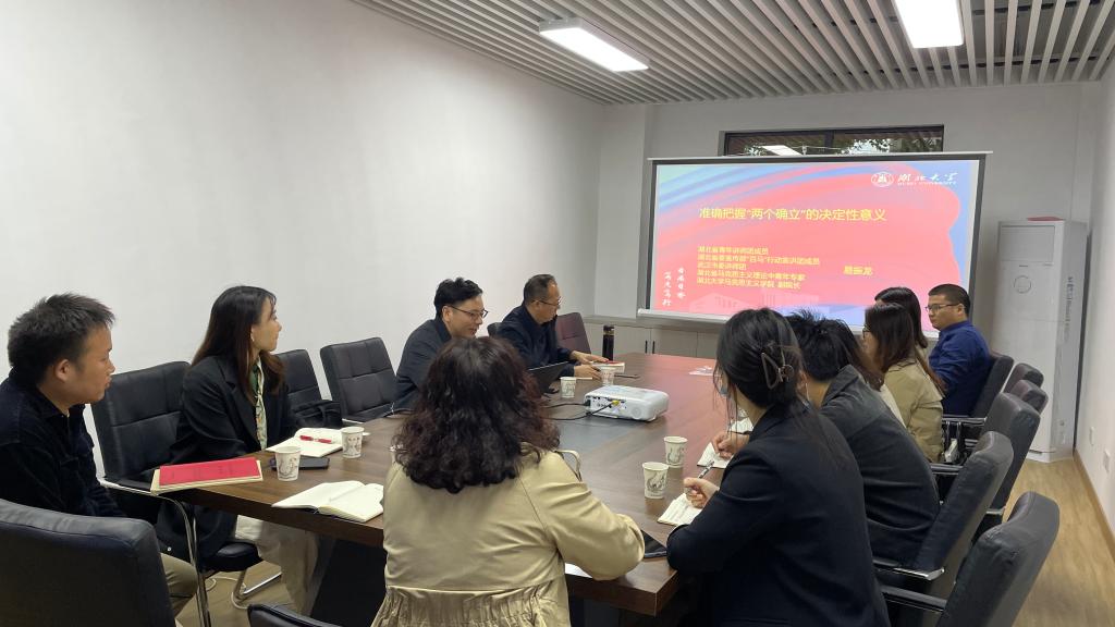 10月6日,公司在党员活动室举行《习近平谈治国理政》第四卷宣讲报告会。本次活动邀请湖北省青年讲师团成员、湖北省委宣传部“百马”行动宣讲团成员、武汉市委讲师团、湖北省马克思主义理论中青年专家、威廉希尔马克思主义公司副经理易振龙作《准确把握“两个确立”的决定性意义》主题报告,公司班子成员、全体教职工参与学习,活动由公司党委书记陈红灿主持。