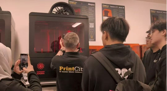 2024级软件工程专业贾尚儒:我们参观了曼城大的3D打印工作室——print city,英方老师的讲解耐心且风趣,所有人都沉浸其中。通过老师的实际演示以及参观环节,我了解了3D打印的种类,机器成本,制作过程,生产用途等,并且也参观到了十分先进的大型3D打印机器。