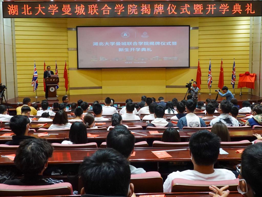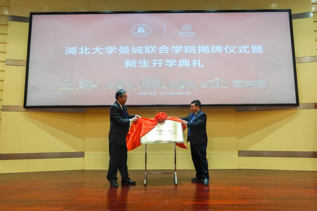 10月18日下午,williamhill威廉希尔(以下简称“联合公司”)揭牌仪式暨2021级新生开学典礼在公司会议中心举行,曼彻斯特城市大学通过视频连线方式参与交流互动。