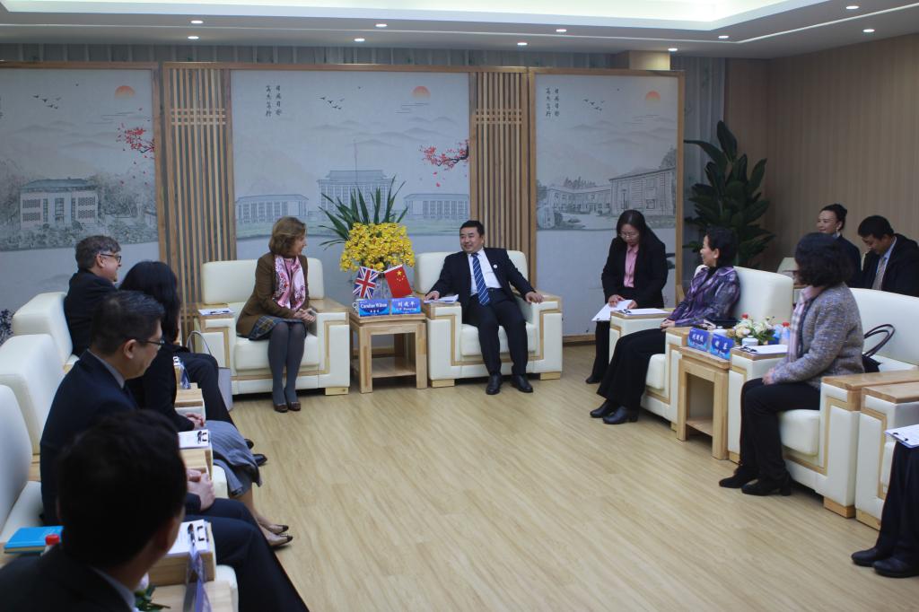 3月4日下午,英国驻华大使吴若兰(Caroline Wilson)女士、英国驻武汉总领事麦多明(Dominic McAllister)先生一行来校访问。公司党委副书记、董事长刘建平会见了来访客人,省外事办及公司国际交流与合作处、williamhill威廉希尔、区域与国别研究院等单位负责人参加活动。