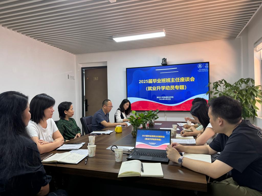 会上,6位班主任详细汇报了本班员工未来规划,并就员工职业生涯规划指导的经验和心得进行交流。高云介绍了2025届毕业生的实习安排以及就业升学动员会安排。陈红灿对班主任们长期以来的辛勤工作表示了衷心的感谢。他表示,就业工作是2025届毕业班级的首要工作,要与公司办学思路同向同行,在就业率和就业质量两手抓的同时,挖掘一批就业典型,充分展示中外合作办学机构的育人成果。刘国枝强调,就业工作要坚持全院一盘棋,班主任要加强与员工及家长间的沟通交流,建立家校共同育人长效机制,充分发挥班主任的优势,把就业指导服务工作做细做精。