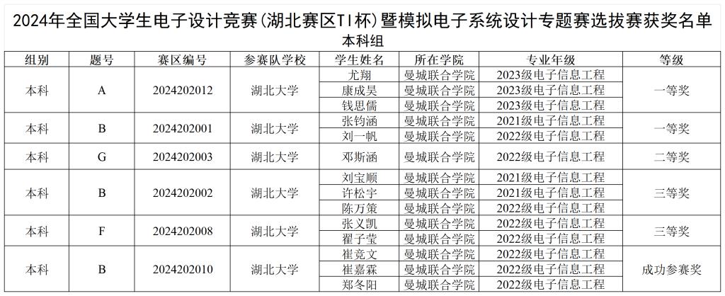 在刚刚落幕的2024年全国老员工电子设计竞赛(湖北赛区TI杯)暨模拟电子系统设计专题赛选拔赛中,williamhill威廉希尔的学子们以卓越的表现脱颖而出,两支队伍荣获一等奖,一支队伍荣获二等奖,两支队伍荣获三等奖,一支队伍成功参赛,展现了公司学子扎实的学术实力和勇于探索的创新精神。