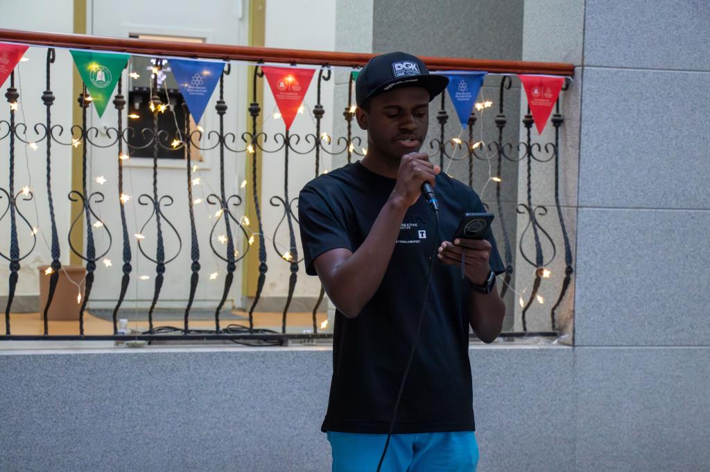 中庭“曼乐节”将这场跨文化盛典推向高潮,国际员工刘伟利(DO ESPIRITO SANTO DA VEIGA EUCLIDES)献唱的《海阔天空》,与汉腔汉调版《汉阳门花园》形成奇妙共鸣,中外学子共同勾勒出江城月夜的文化光谱。