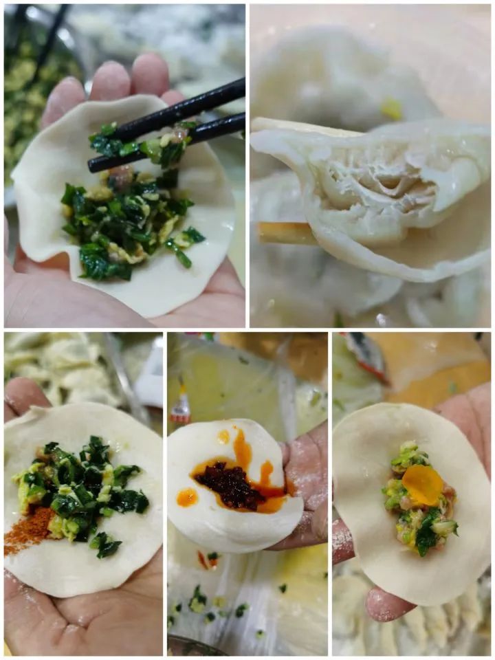 为了制作“幸运饺子”,同学们突发奇想,饺子皮馅饺子、辣椒粉韭菜馅饺子、老干妈馅饺子、橡皮糖猪肉馅饺子、辣条馅饺子……同学们用自己的奇思妙想,将“怪味饺子”转变为“幸运饺子”,虽然味道千奇百怪,但是代表了同学们对未来的美好期待。
