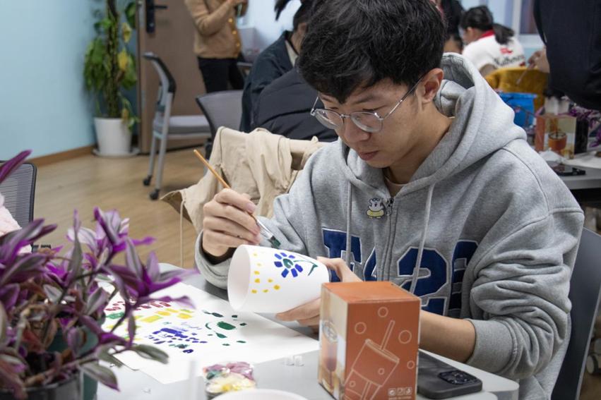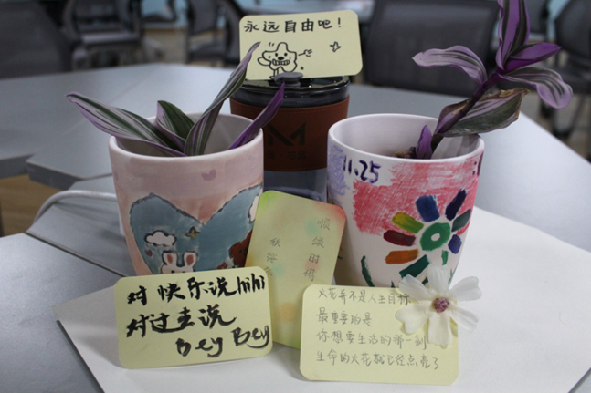 材料科学与工程专业段斯羽感触良多,“一个小小的花盆,一个突然迸发于脑中的灵感,一只紧握在手中的画笔,汇聚到一起形成了充满创意的DIY作品,看着自己亲手绘制的作品,轻松愉悦的心情溢于言表,身心也得到极大的放松。”