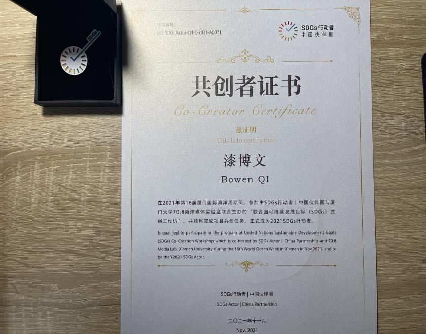 “机会总是留给那些有准备的人”,利用周末时间,漆博文与艾典一同组队,参加了“2021厦门国际海洋周|联合国SDG共创工作坊”招募活动,并获得“共创者证书”。一次地铁上的交流,让他们决定创立威廉希尔“3D创印社”。该社团致力于“3D打印技术”的实践操作和灵活应用,注重培养创新设计能力、结构分析能力、三维空间思维能力以及综合应用知识的创新能力。